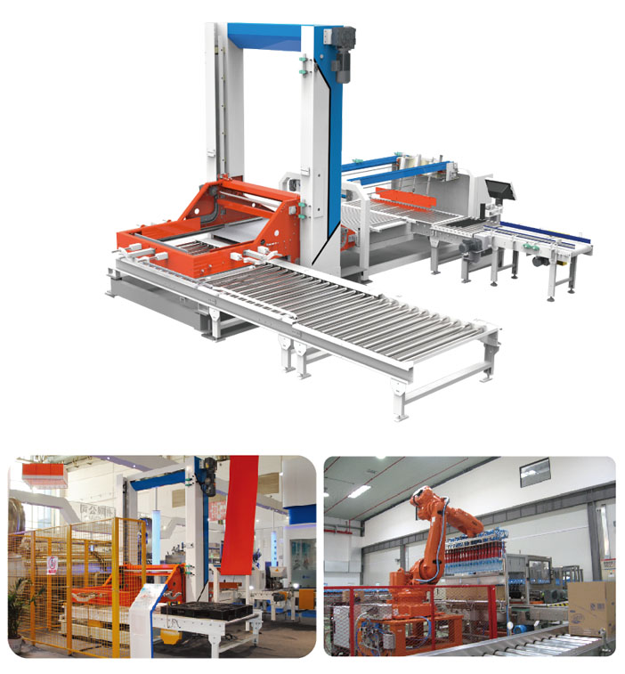 碼垛機適用于紙箱、塑箱、膜包以及桶類等多種類型包裝件的堆疊,設備主機分為差速皮帶、轉向機構、排箱區、碼箱區、主體升降機構、出垛滾筒等部分,并可選用層隔板裝置以增加垛層的穩定性,各種工作形式為不同的碼垛而設計,生產速度可達24000-72000BPH。