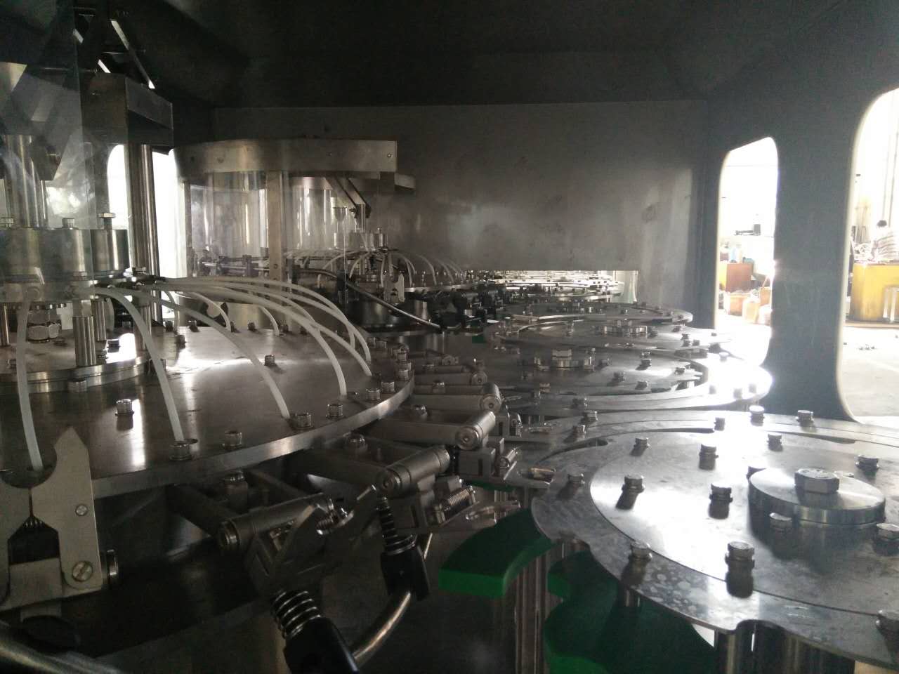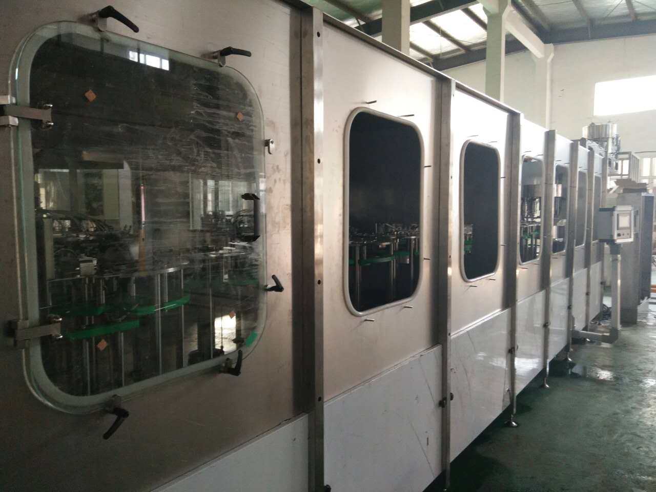 日前,河南淼雨飲品股份公司從我司訂購(gòu)的10000瓶/小時(shí)超潔凈蘇打水灌裝線,進(jìn)入最后的組裝調(diào)試階段,再過(guò)幾天,這臺(tái)集兩道消毒液噴沖、一道無(wú)菌水沖洗、灌裝、旋蓋于一體的五合一超潔凈灌裝機(jī)就將順利下線,發(fā)往客戶工廠。