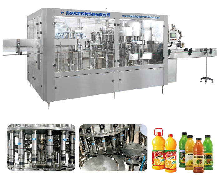 本系列設備集洗、灌、封為一體,適用于各種果汁飲料、茶飲料的熱灌裝生產,同時更換少量的零部件,便可用于純凈水、礦泉水的灌裝。產量4000-24000瓶/小時,可供用戶選擇。采用先進的微負壓重力式灌裝原理,灌裝快、穩、準,設有完善的物料回流系統,也可實現回流時獨立回氣,不與物料接觸,減少物料二次污染及氧化。本機能滿足95℃以下熱灌裝技術要求,灌裝閥及物料進出管路無衛生死角,同時配有CIP自清洗接口,封蓋前設有對瓶口RO水沖洗裝置,以確保瓶口無發霉現象。采用磁力扭矩式擰蓋頭,實現抓蓋、擰蓋功能。擰蓋力矩無級可調,具有恒力矩旋封塑蓋功能。整機采用人機界面觸摸屏控制、PLC電腦程序控制、變頻器控制等先進技術。具有供蓋系統自動控制、灌裝溫度自動檢測、物料高溫報警、低溫停機并自動回流、無瓶不加蓋、缺瓶等待、缺蓋停機等功能。